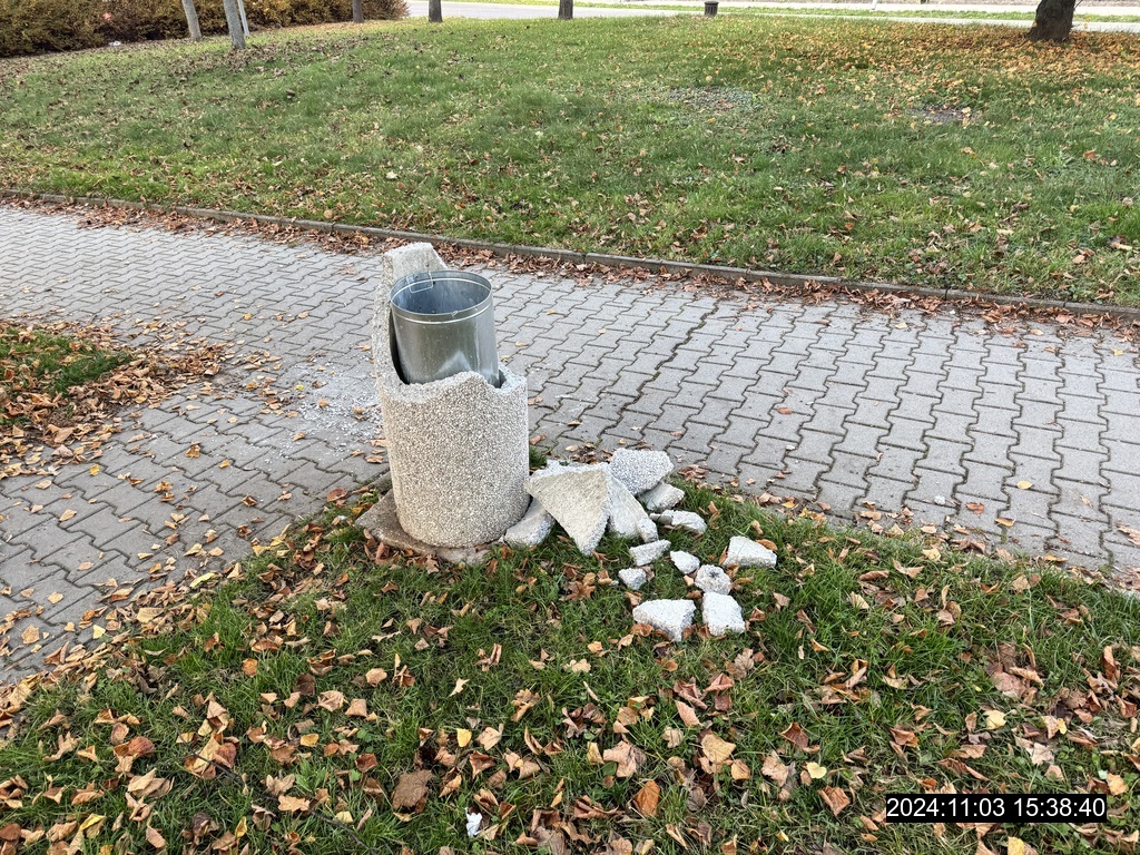 A nedaleko odtud stál osaměle nebohý betonový odpadkový koš, který skončil na zemi po útoku druhého samuraje