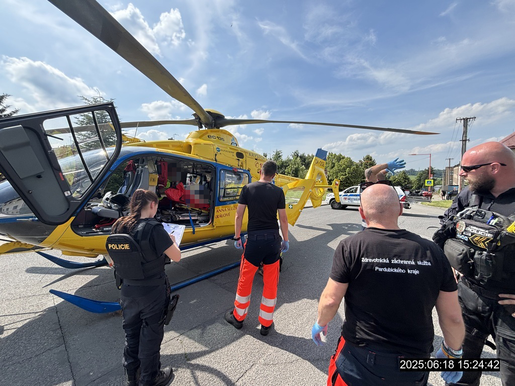 Dále strážníci a policisté v součinnosti zajistili prostor, kde došlo k přistání vrtulníku LZS Kryštof 06 (křižovatka u býv. BOTAS), a kdy zde prováděli usměrňování provozu a odklon dopravy. Později strážníci poskytli součinnost při transportu osoby ze sanitního vozu do vrtulníku.